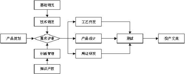 從橫向看,研發部門從承接市場部的產品規劃出發,通過需求評審后,進行產品、工藝、周邊(包裝、衍生物、UI等)的設計和開發,直至測試、打樣、投產,對所有新產品的開發工作行使項目管理職能。